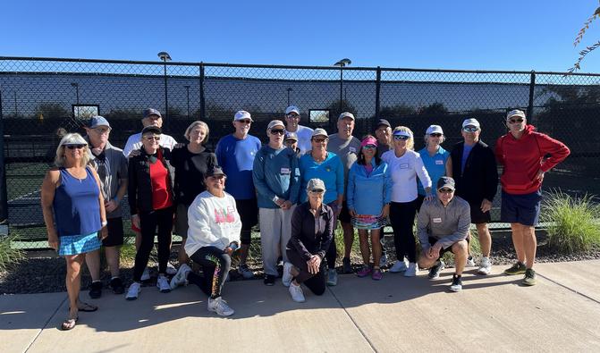 Who knew our group of AZT pickleball players is color coordinated? For the Fourth of July, we came to play dressed in red, white, and blue. All we needed were fireworks and patriotic music. What will they wear for Halloween?